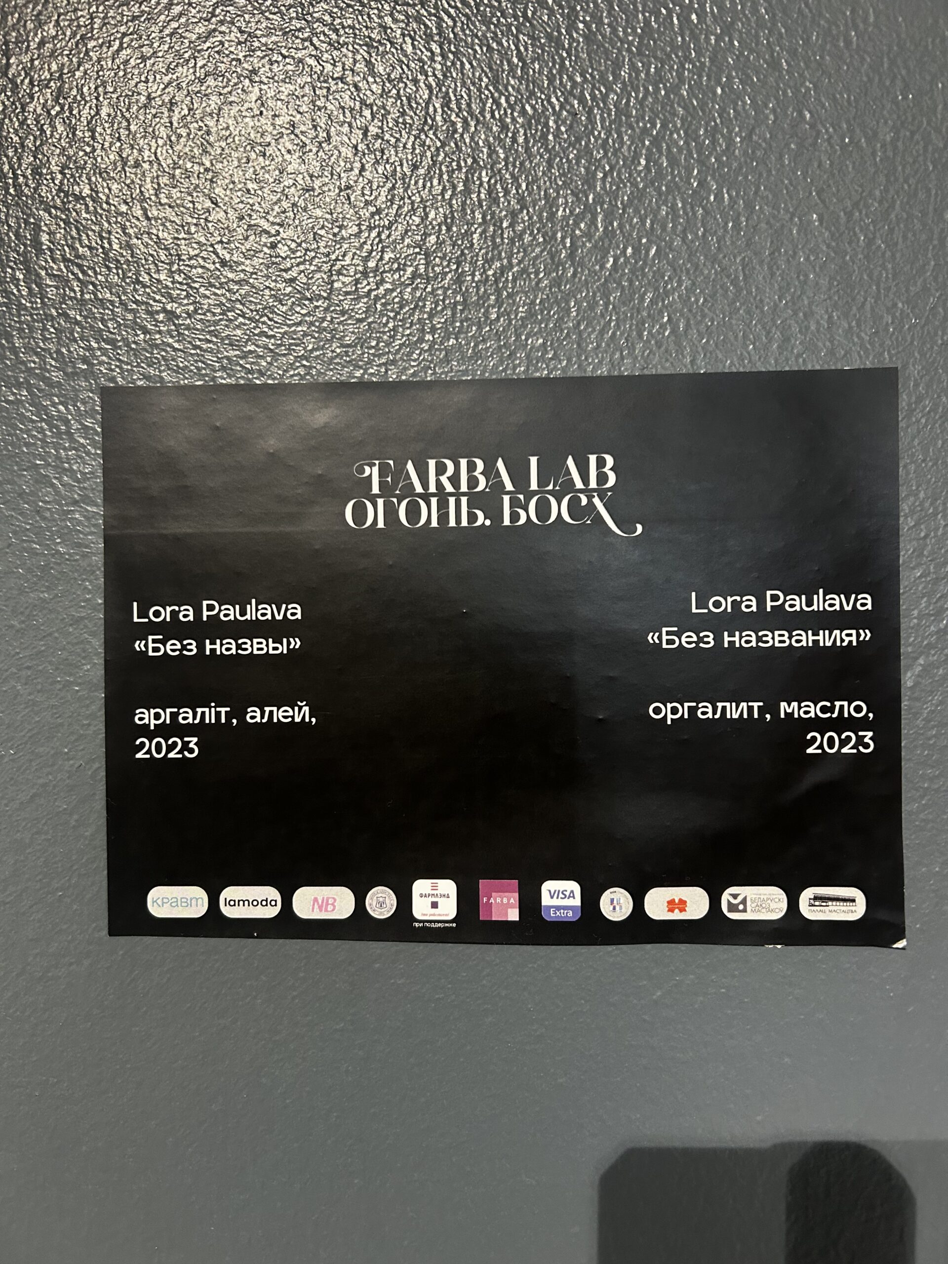 Artist Lora Paulava took part in the exhibition project “FARBA Lab. Fire. Bosch” with the painting “Untitled” (oil, hardboard, 80X55).