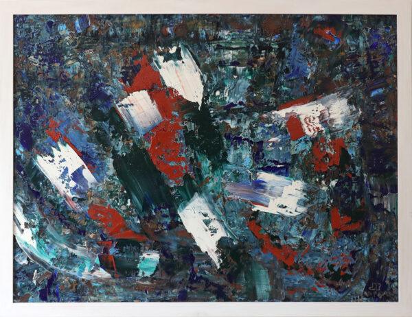 This work visually reveals the deep interaction of green and blue colors, creating an atmosphere of peace and inner silence. Abstract forms are gently intertwined, evoking associations with nature and emotional harmony. This painting becomes not just an interior piece, but a source of inspiration and tranquility.