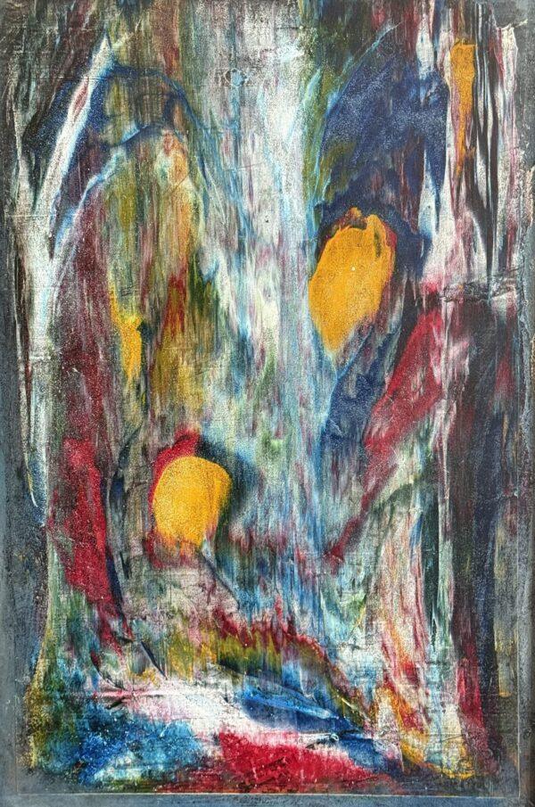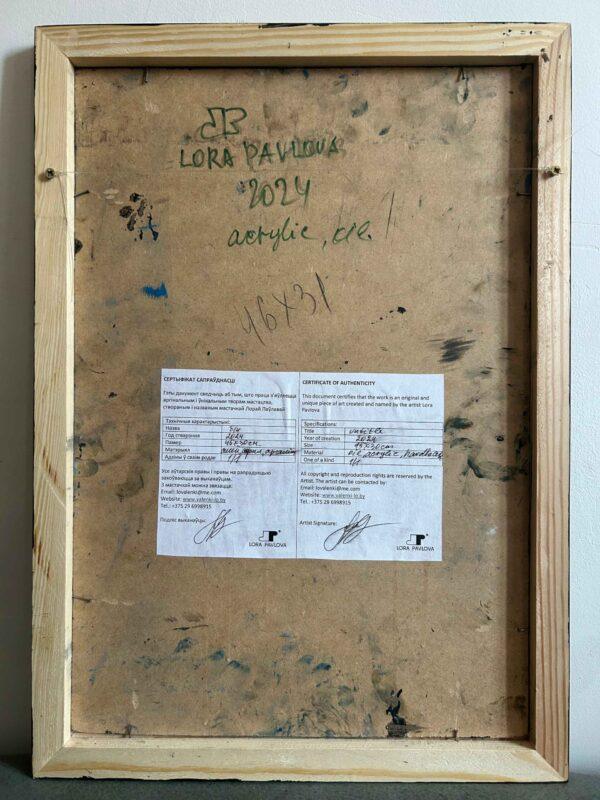 In this painting, the artist immerses the viewer in the image of the Garden of Eden. Abstract shapes and a bright color palette create a feeling of blooming, symbolizing the path to inner happiness and harmony with nature. This work brings inspiration and awakens a sense of joy in life, inviting you to find your own center of balance and peace.