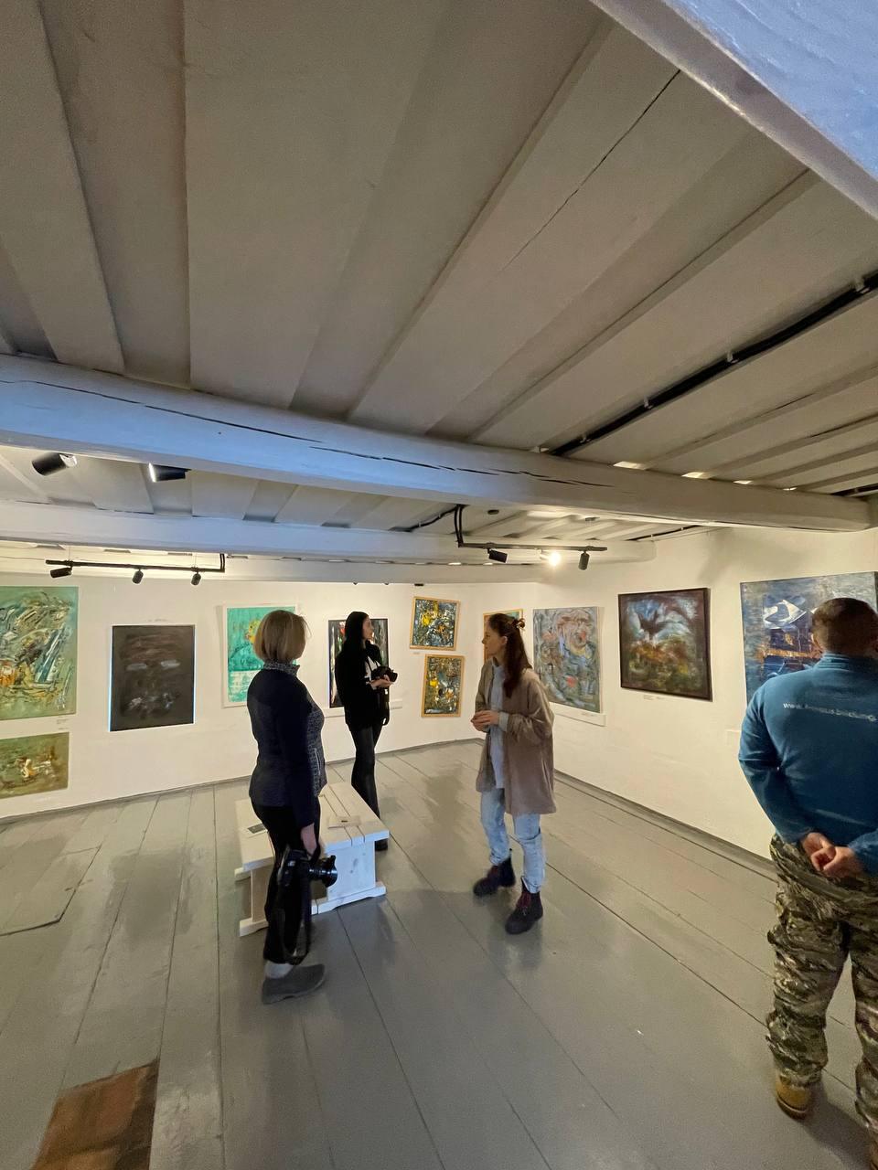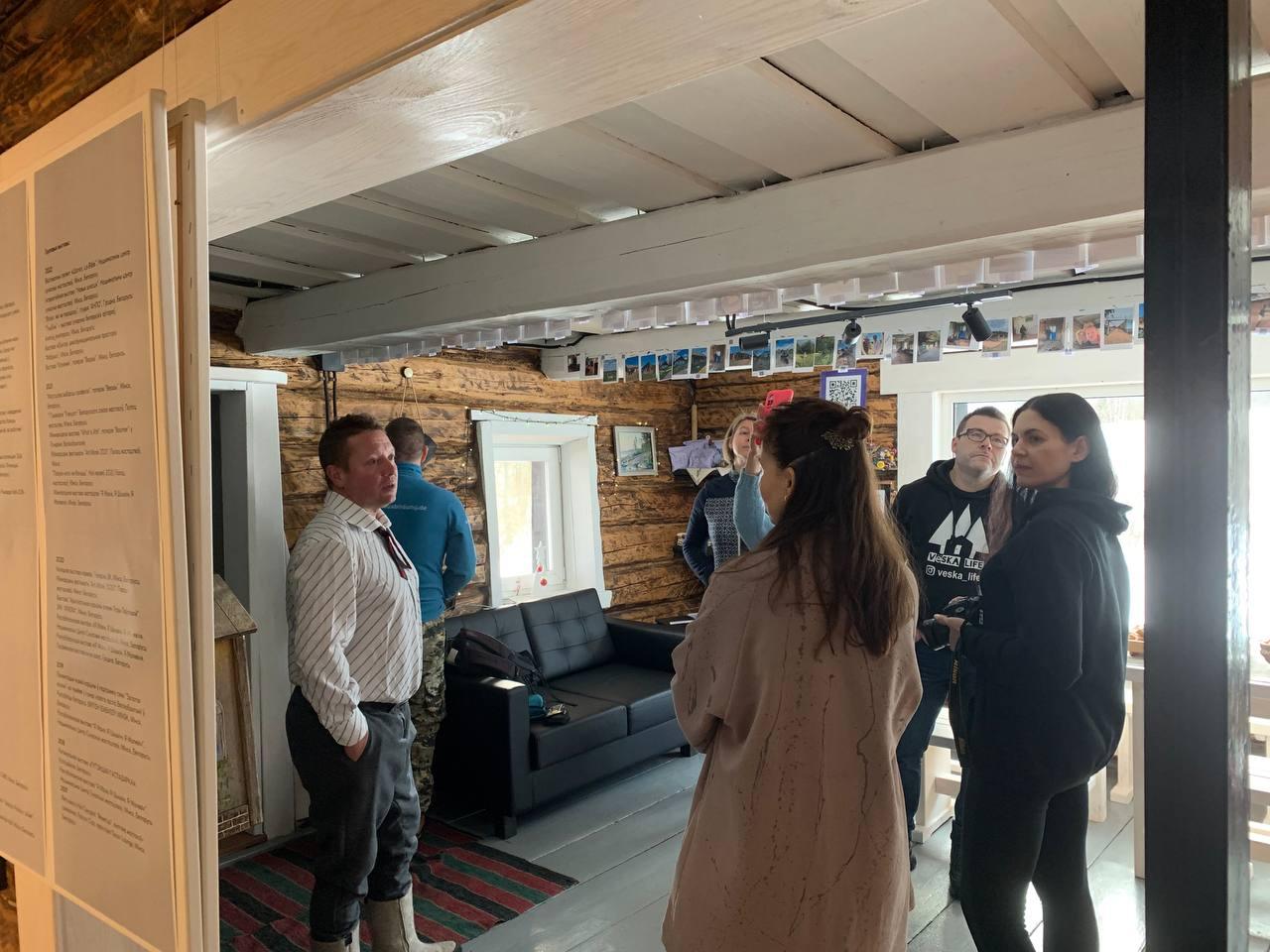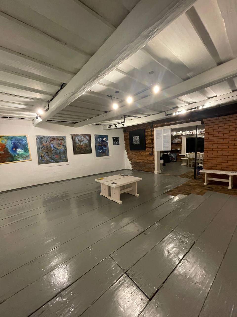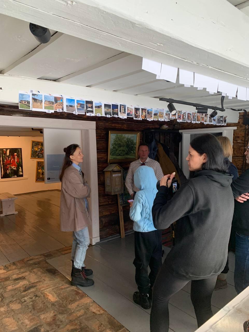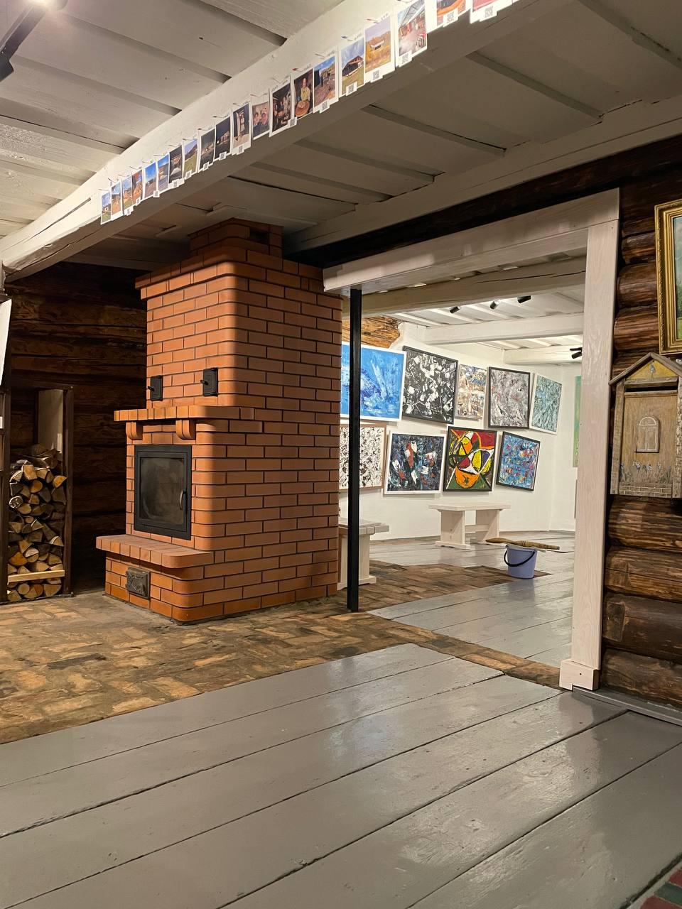 На выставке также представлена фотохроника реконструкции в галерею из старого дома в деревне от начала
