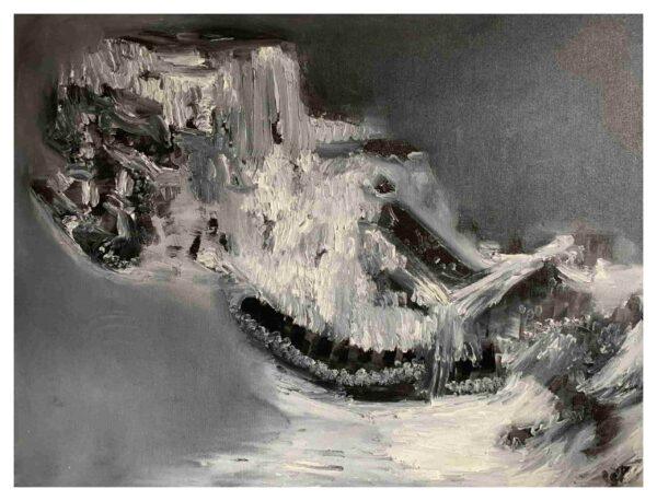 Эта картина погружает зрителя в мир контрастов и динамики черно-белой абстракции. Экспрессивные мазки и игра света придают композиции эмоциональную глубину и напряжение, выражая баланс между силой и хрупкостью.