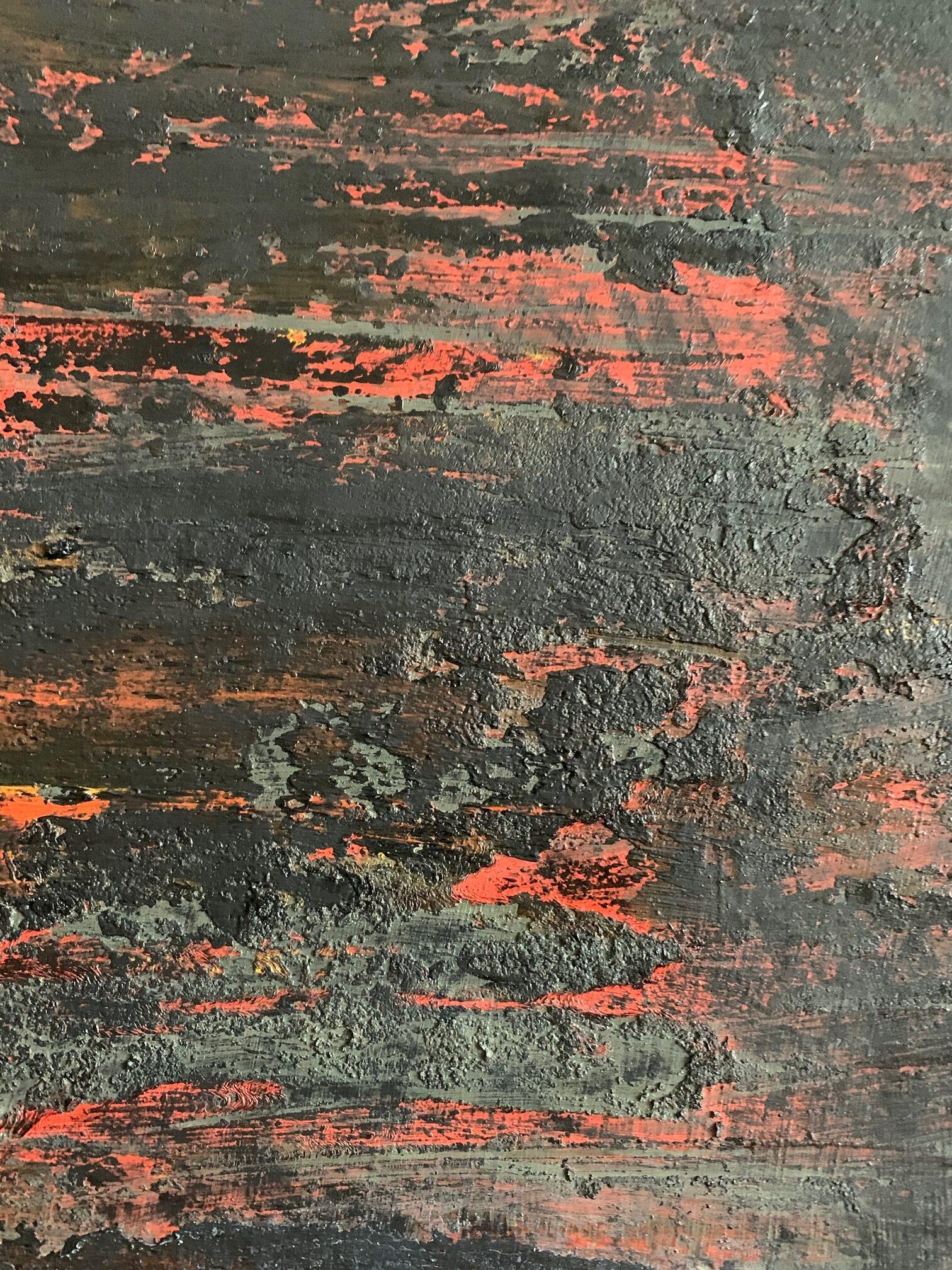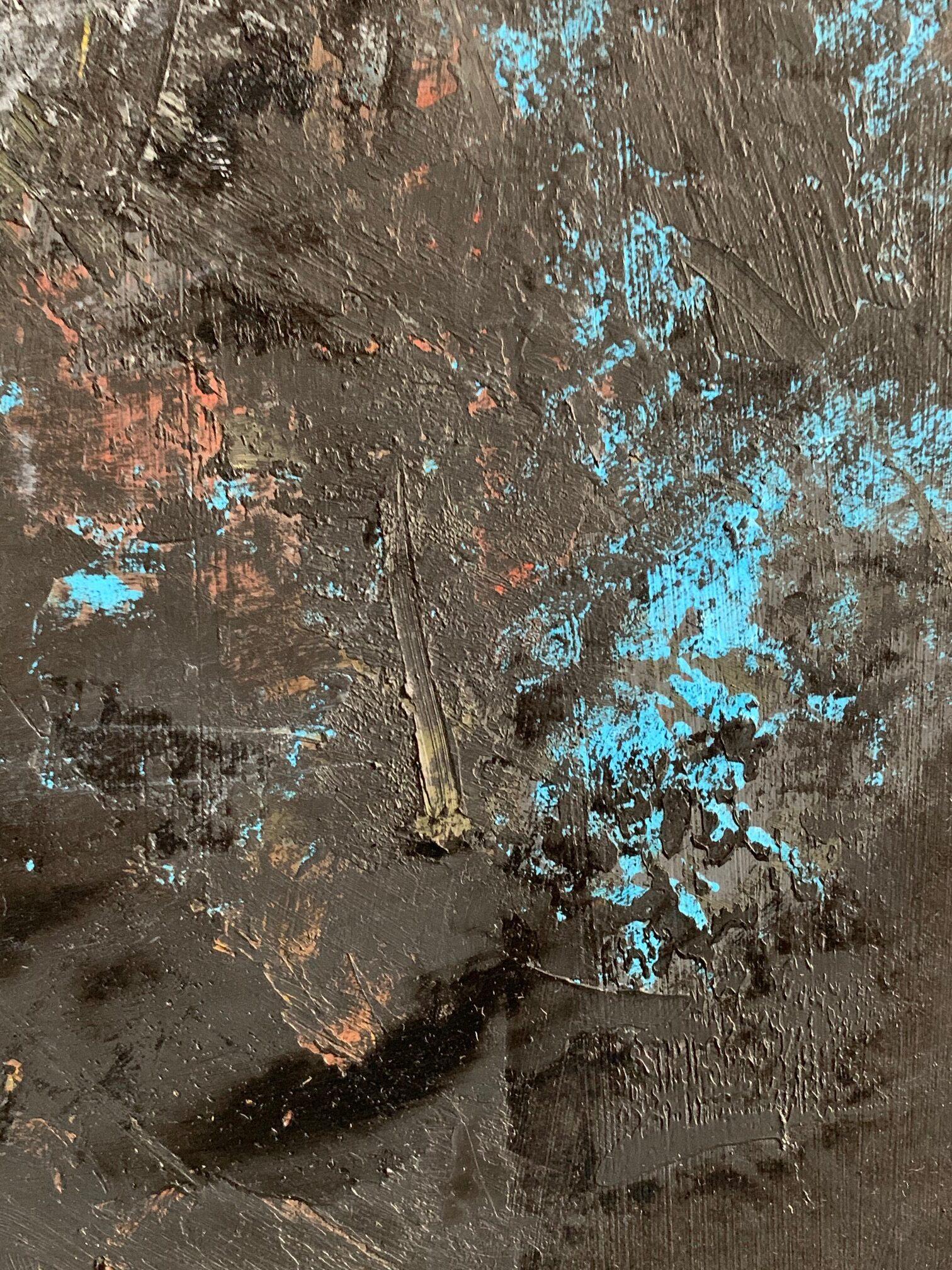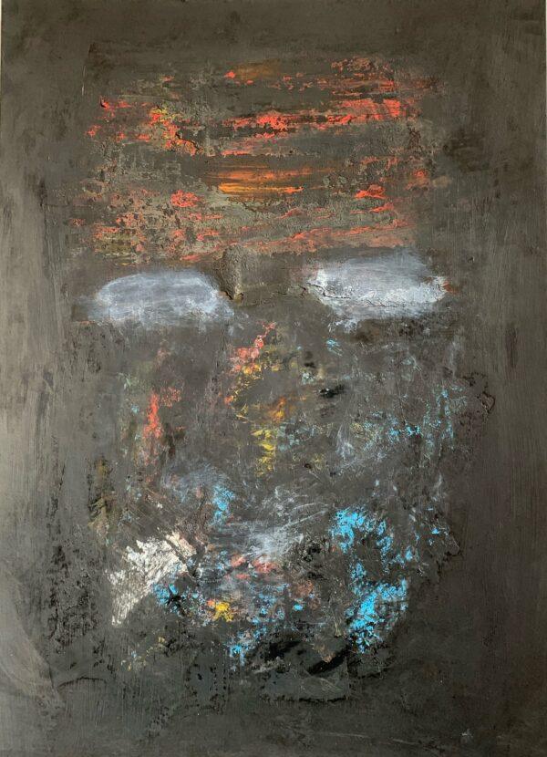 На этой картине художница передает внутреннее напряжение и философские размышления о государстве и обществе. Использование красного, голубого и черного оттенков формирует контрастное и эмоционально насыщенное пространство, в котором переплетаются образы новостей и идей Платона. Абстрактное изображение портрета вызывает озадаченность, заставляя зрителя искать скрытый смысл и размышлять о природе власти и истины.