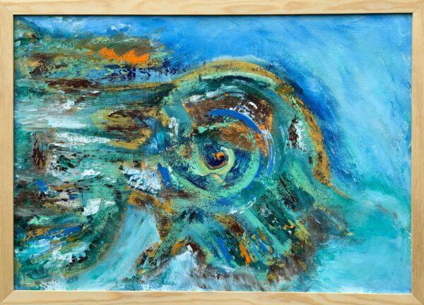 На этой абстрактной картине художница передает уникальную атмосферу итальянского побережья у подножия гор с высоты птичьего полета. Яркие и насыщенные цвета в сочетании с абстрактными формами создают впечатление движения волн и величия горных вершин. Картина вызывает чувство свободы и вдохновения, передавая красоту природы в выразительной современной манере, отражая дух города, возможно Неаполя.