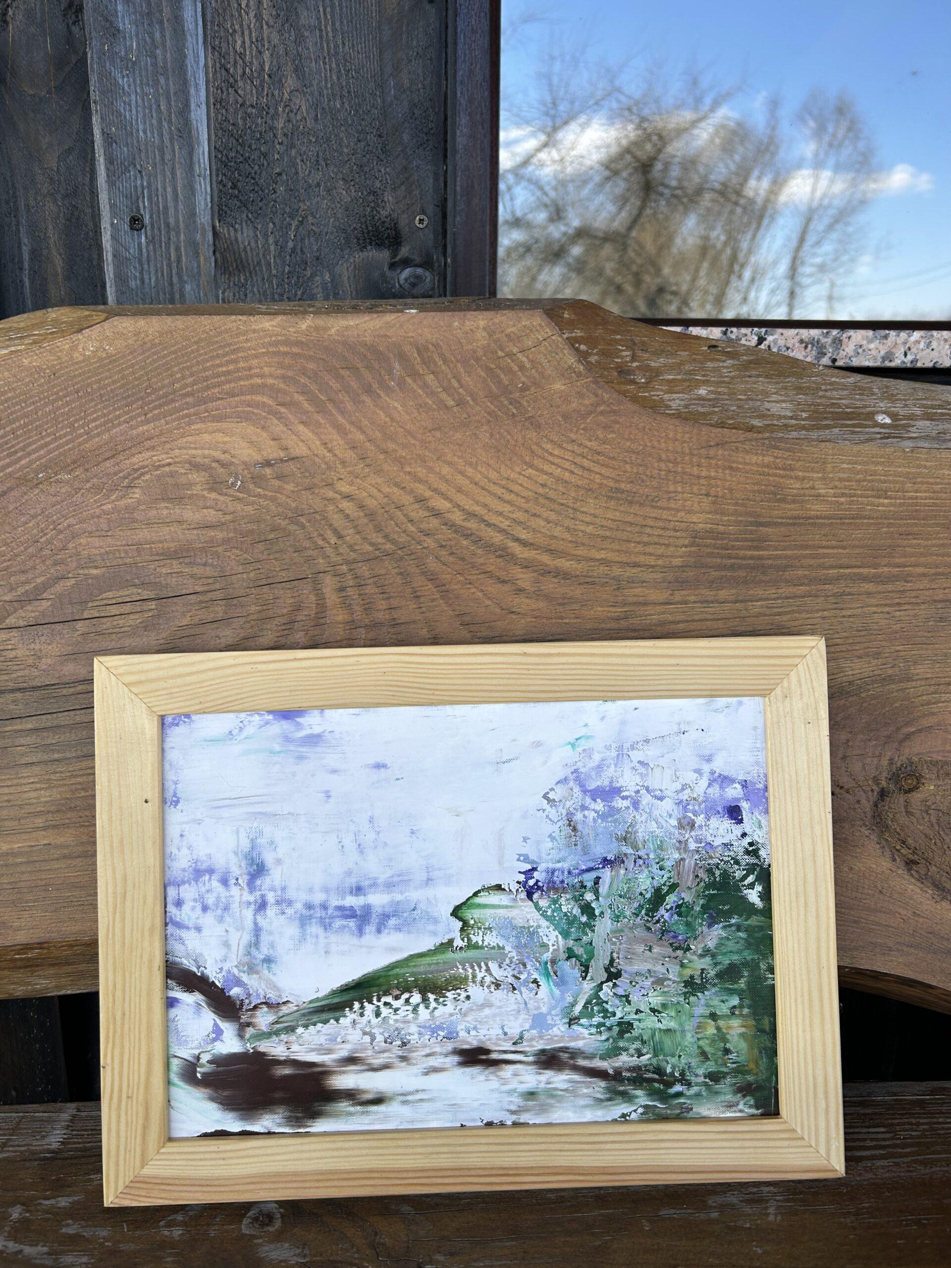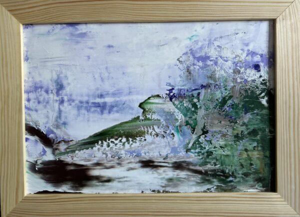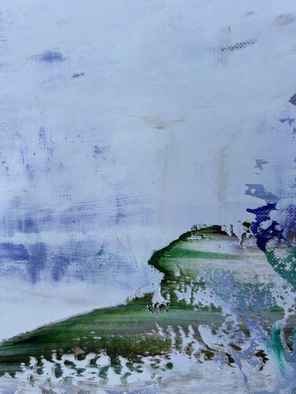 Эта картина передает атмосферу тёплого летнего дня на лугу, наполненного ароматами мяты и нежными оттенками природы. Абстрактное изображение трав и цветов создает впечатление движения ветра и свежести воздуха под голубым небом. Мастерское использование цвета и формы отражает гармонию природы, приглашая зрителя ощутить покой и вдохновение, исходящие от летнего пейзажа.