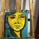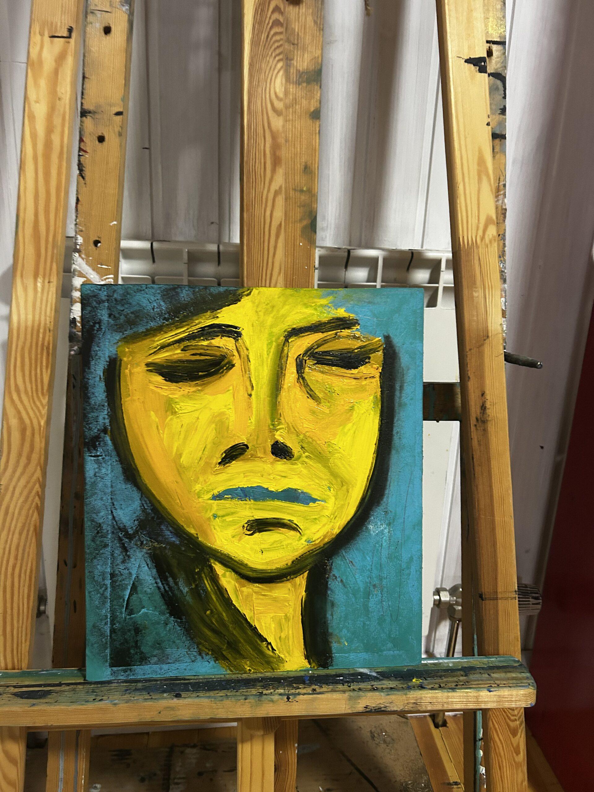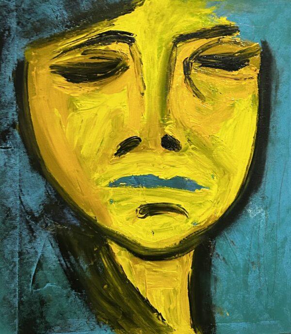 На этом эмоциональном полотне передана глубокая печаль через выразительный портрет женщины, выполненный в насыщенных бирюзовых тонах. Экспрессионистская манера позволяет художнику раскрыть внутренний мир героини, передать сложные чувства и душевное состояние. Бирюзовый цвет усиливает атмосферу задумчивости и меланхолии, приглашая зрителя проникнуться тонкостью эмоций и задуматься о природе человеческих чувств.